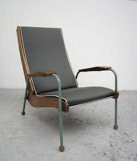 Cette chaise de conférence de Jean Prouvé a été réalisée en 1950. Bien plus tôt, en 1924, Jean Prouvé avait déjà réalisé la chaise inclinable.